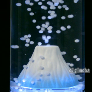 スノーマウンテン、ボルケーノどちらもクールな動くインテリアです。暗い室内で見ると、とってもキレイです。ボルケーノは暗い中では迫力をも感じます。眠りにつく前のひと時にクール・ジャズとワインで寛ぐときは、「アクアチューブ」をそばに置いて眺めてみてください。よりゆったりと寛げます。 電源は家庭用の100Vですが、どこかへ持っていったり、コンセントのない場所に置くときは単3電池でも稼働します。