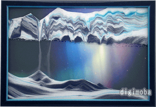 壁付けタイプの特徴はバックの宇宙的な、あるいはジオグラフィックな写真画像と相まって、砂の世界がより具体的です。ですから、砂絵のイメージも(素直で)わかりやすいです。お部屋の素敵なインテリアとして、無限に変化する、絵画に近いアート感覚をお楽しみください。